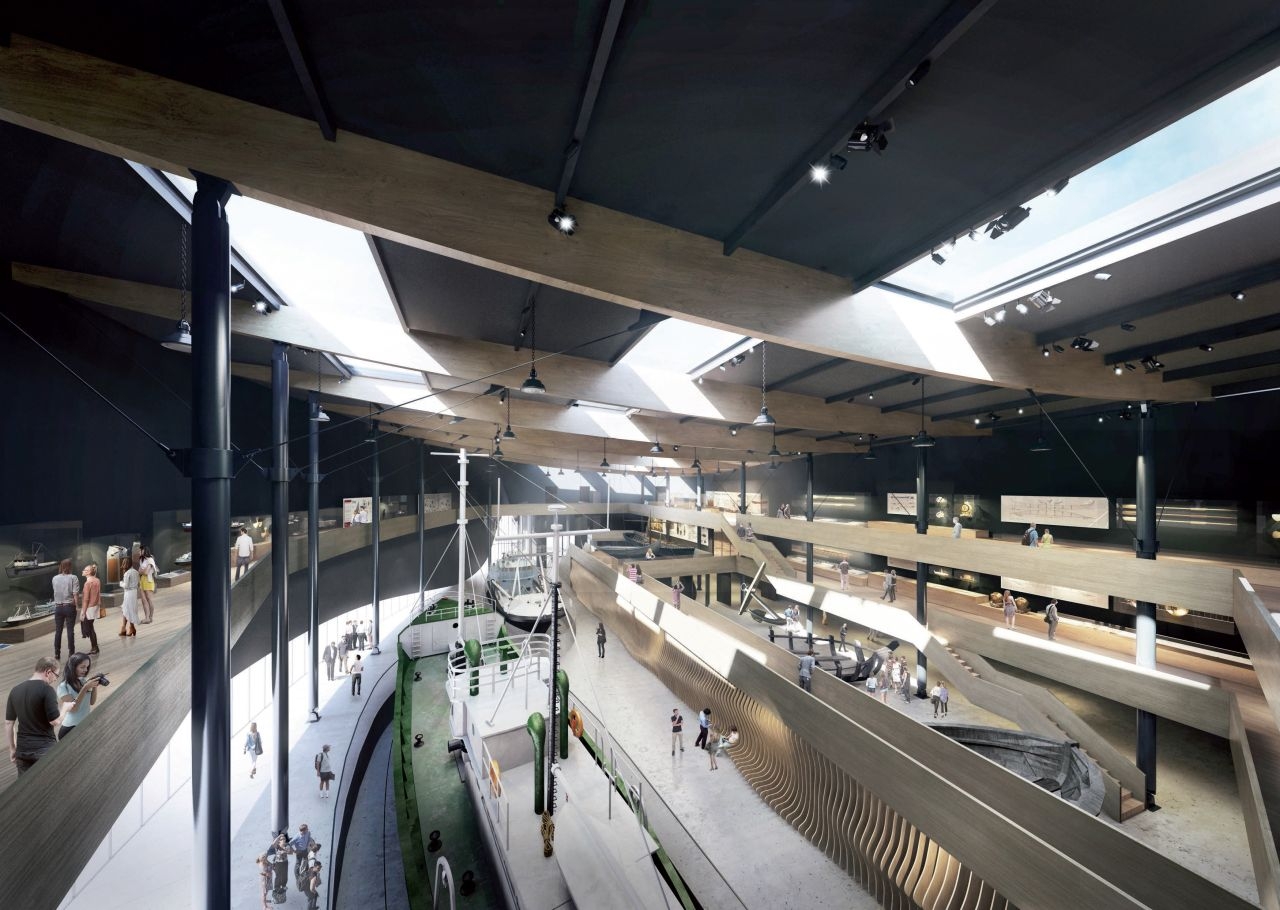 25-metrowy metalowy kuter stanął na środku nowego muzeum morskiego w Łebie. Oddział Narodowego Muzeum Morskiego będzie nawiązywał do transformacji energetycznej – zarówno w tematyce ekspozycji, jak i architekturze budynku.
