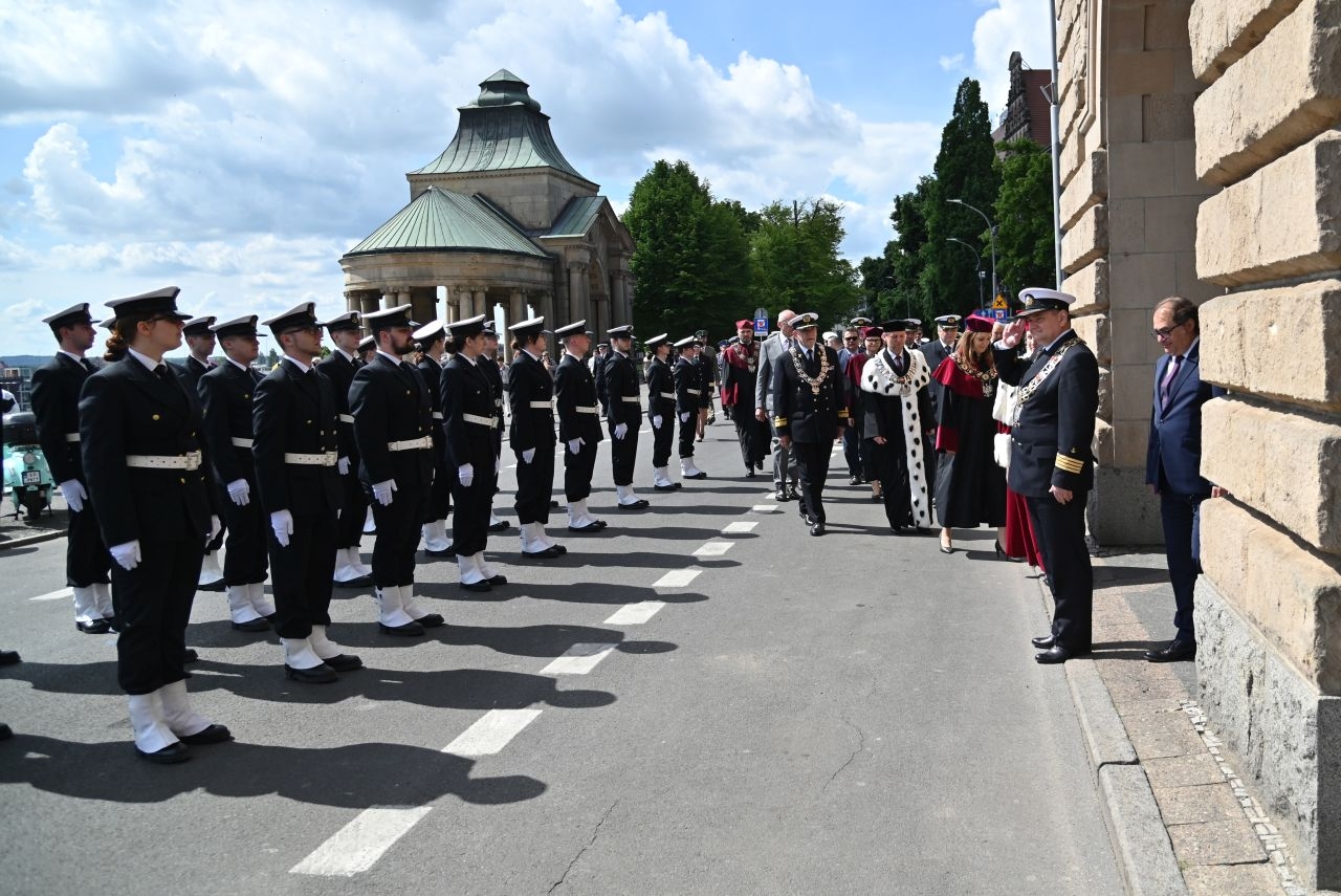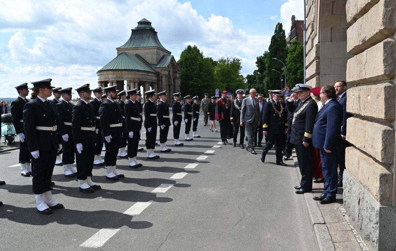 Za nami uroczystości związane z obchodami jubileuszu: podniosły i wzruszający apel pamięci pod pomnikiem „Tym, którzy nie powrócili z morza" na Cmentarzu Centralnym w Szczecinie, a także gala jubileuszowa w sali Teatru Współczesnego, poprzedzona widowiskową musztrą paradną, którą szczecinianie mogli podziwiać na Wałach Chrobrego. Przy akompaniamencie orkiestry wojskowej 8 Flotylli Obrony Wybrzeża ze Świnoujścia, z towarzyszeniem pocztu sztandarowego oraz kompanii honorowej AM – oficjele, zaproszeni goście i władze uczelni przemaszerowali do gmachu Muzeum Narodowego i Teatru Współczesnego, gdzie odbyła się główna część uroczystości.