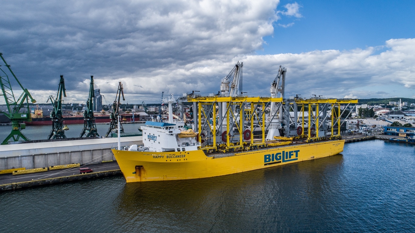 Agentem statku Happy Buccaneer pływającego pod holenderską banderą jest Transfennica Polska. Jednostka ma 145,89 m długości, 28,3 m szerokości oraz 7,02 m zanurzenia. Wyposażona jest w 2 dźwigi, każdy o maksymalnym udźwigu 700 t. Jak powiedział nam Tomasz Pik z firmy Transfennica: "statek ten służy we flocie armatora BigLift nieprzerwanie od 1984 roku. Posiada płaski, niezwykle mocny pokład górny, system pontonów i tweendecków oraz dodatkową, unikalną rampę na rufie stwarzającą możliwość przewozu wielkich ładunków tocznych ro-ro (do 2500 t)".