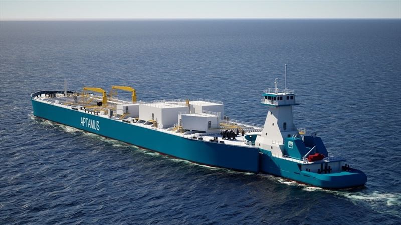 Amerykańskie Biuro Żeglugi (ABS) udzieliło wstępnej aprobaty technicznej (AiP) firmie Overseas Shipholding Group, Inc. (OSG), właścicielowi Aptamus Carbon Solutions, dla wstępnej koncepcji barki przeznaczonej do przewozu skroplonego dwutlenku węgla (LCO2).