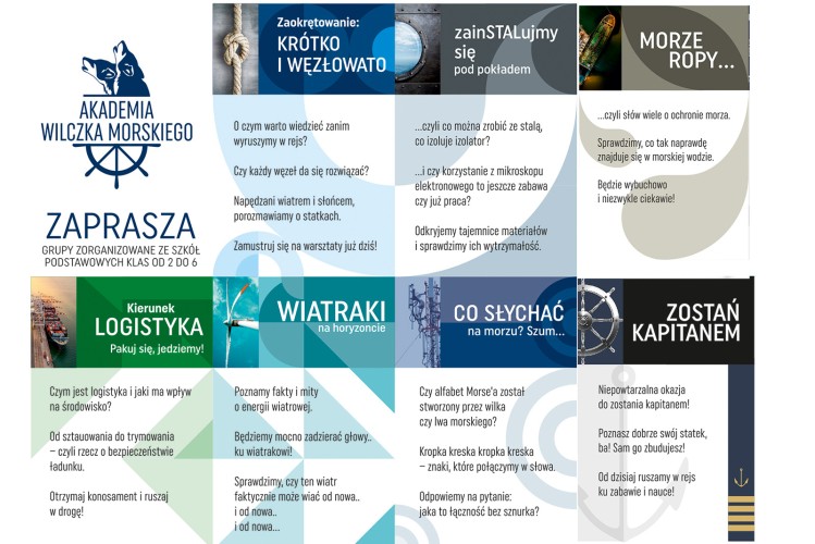 Akademia Wilczka Morskiego to projekt łączący zamiłowanie do zgłębiania wiedzy i chęć dzielenia się nią z najmłodszymi, który realizowany jest w duchu pielęgnowania wielowiekowych tradycji morskich. Warsztaty Akademii Wilczka Morskiego obejmują zajęcia o tematyce morskiej i odbywają się na wszystkich wydziałach Politechniki Morskiej w Szczecinie przy osobistym udziale naukowców. Każde zajęcia są dostosowane do grupy wiekowej, a podczas nich dzieci zdobywają wiedzę o takich zagadnieniach jak: odnawialne źródła energii („Wiatraki na horyzoncie”), logistyka („Kierunek logistyka – pakuj się jedziemy!”, mechanika („zainSTALujmy się pod pokładem), nawigacja (Co słychać na morzu? Szum), doświadczenia chemiczne (Morze ropy) oraz praca na statku (Zostań kapitanem).