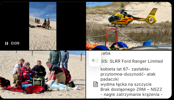 O akcji poinformował w serwisie X Sebastian Kluska, dyrektor Morskiej Służby Poszukiwania i Ratownictwa. Opisał on całe zdarzenie podkreślając wysiłek ratowników." Długi dojazd, trudny dojazd, dużo ludzi i wszech obecny piach. Słowiński Park Narodowy nie posiada żadnych ułatwień dla ratowania życia piękno przyrody i niebezpieczeństwo w jednym. W tamtym miejscu jesteśmy długo skazani na swoje umiejętności ratownicze w zakresie medycyny. Kto chociaż raz wbiegał pod tą górę wie o czym mówię . Dziś się udało. Nieoczekiwanie pomoc zjawiła się z nieba". Kobieta trafiła do szpitala.