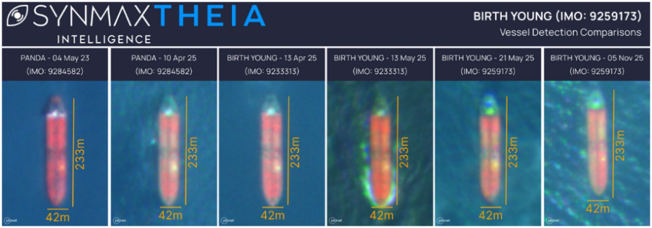 Lloyd’s List niedawno zidentyfikował dwa zbiornikowce, które posługiwały się numerami IMO „dead tankers”, aby ukryć swoje prawdziwe tożsamości. SynMax zidentyfikował objęte sankcjami statki, podszywające się pod „dead tankers”, jako ex-Panda (IMO: 9284582) i Koen (IMO: 9199127).