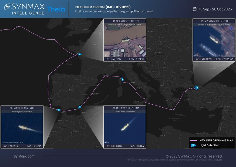 Trasa statku-zombie i jego pozycje. Źródło: SynMax Intelligence