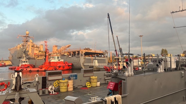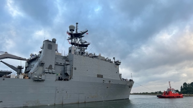 – USS Kearsarge wejdzie do portu około godziny 7, zacumuje przy Nabrzeżu Francuskim. Przypływa w podobnym celu. Transportowane przez niego pojazdy będą myte przed zabraniem ich z kraju, do tego wypoczynek załogi i marine corps. Wypływa z Polski również 19 września – podaje Michał Czernów.