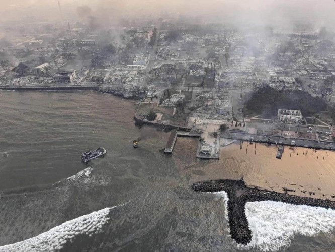 Desoladoras imágenes de la gran devastación en #Lahaina, #Hawái 🇺🇸 tras los terribles incendios que arrasan a #Maui