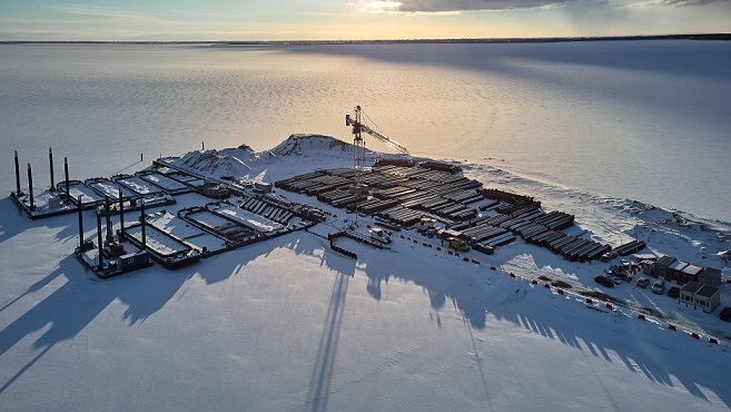 Ze względu na zamarznięcie Zalewu Wiślanego konieczne było czasowe wstrzymanie działań na sztucznej wyspie. Kontynuowane są natomiast dostawy materiałów: grodzic i rozpór tymczasowych. Odbywa się serwis sprzętu.