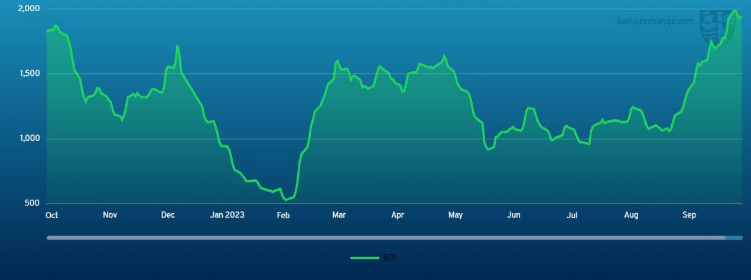 Kolejny tydzień, to kontynuacja dynamicznego wzrostu indeksu, wskazującego warunki średniego poziomu czarterów na czas wybranego koszyka statków masowych. Wartość tego wskaźnika zmierzał ku 2,000 punktów. Taka sytuacja nie była notowana od już dłuższego czasu. Rynek coraz bardziej się wzmacniał i to w większości sektorów segmentu masowego.