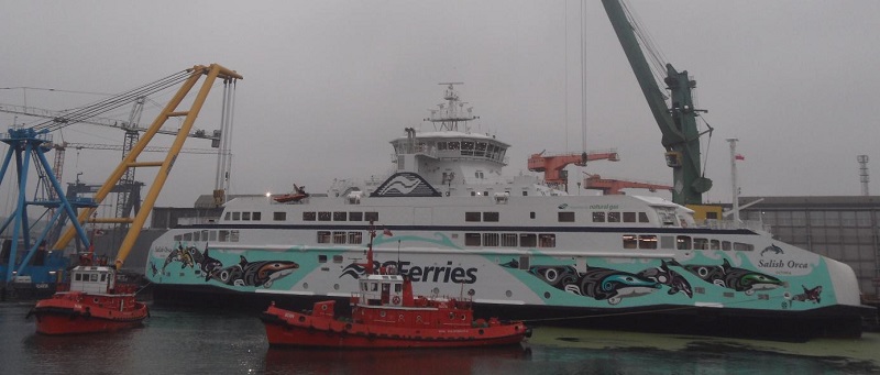 Należy również dodać, że dla armatora kanadyjskiego serię promów zasilanych gazem z własną instalacją LNG wykonała Remontowa Shipbuilding. Pierwszy prom Salish Orka dostarczono przed kilku laty i sprawdza się on na lokalnych połączeniach w British Columbia. Dla BC Ferries zbudowano 4 promy. Napęd promu składa się z trzech silników typu Dual Fuel napędzających dwa pędniki azymutalne (po jednym na dziobie i rufie). W Remontowej przebudowano również prom BC Ferries, montując na nim instalację LNG.