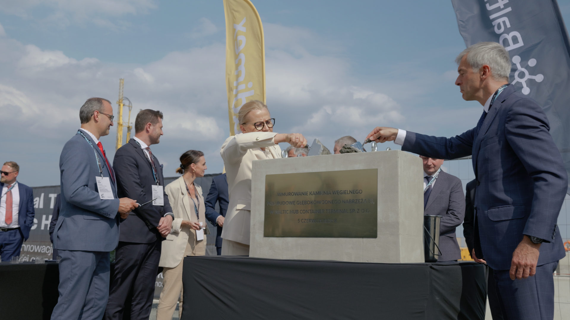 5 czerwca 2024 roku zaproszeni goście mieli okazję na własne oczy zobaczyć postęp prac. Uroczystość wmurowania kamienia węgielnego odbywała się bowiem na samym T3 – tuż obok nieustannie pracowały koparki i inne maszyny budowlane. W ceremonii udział wzięli m.in. reprezentanci władz i właścicieli Baltic Hubu, rządu oraz samorządu, a także zaprzyjaźnionych i zaangażowanych w projekt instytucji i firm.