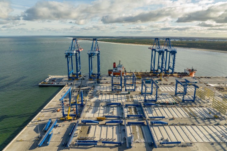 Wyjaśnił, że nawierzchnia została ułożona na 500 metrach nabrzeża oraz w sześciu z czternastu sektorów kontenerowych, w których będą pracować półautomatyczne suwnice RMG. "Równolegle prowadzone są prace hydrotechniczne i instalacyjne, niezbędne do pełnej operacyjności infrastruktury. Zakończenie budowy planowane jest na 2025 rok" – dodał.