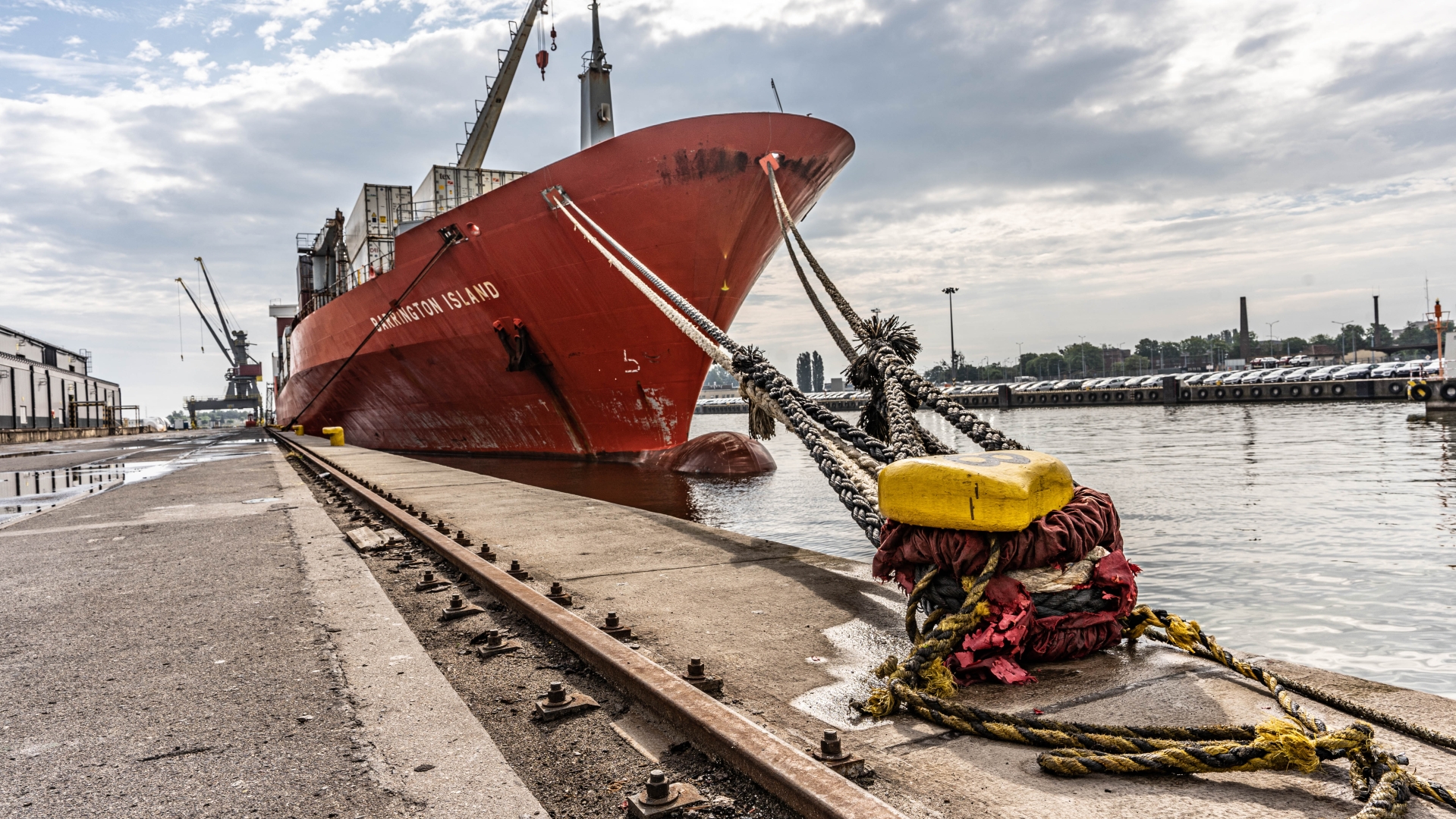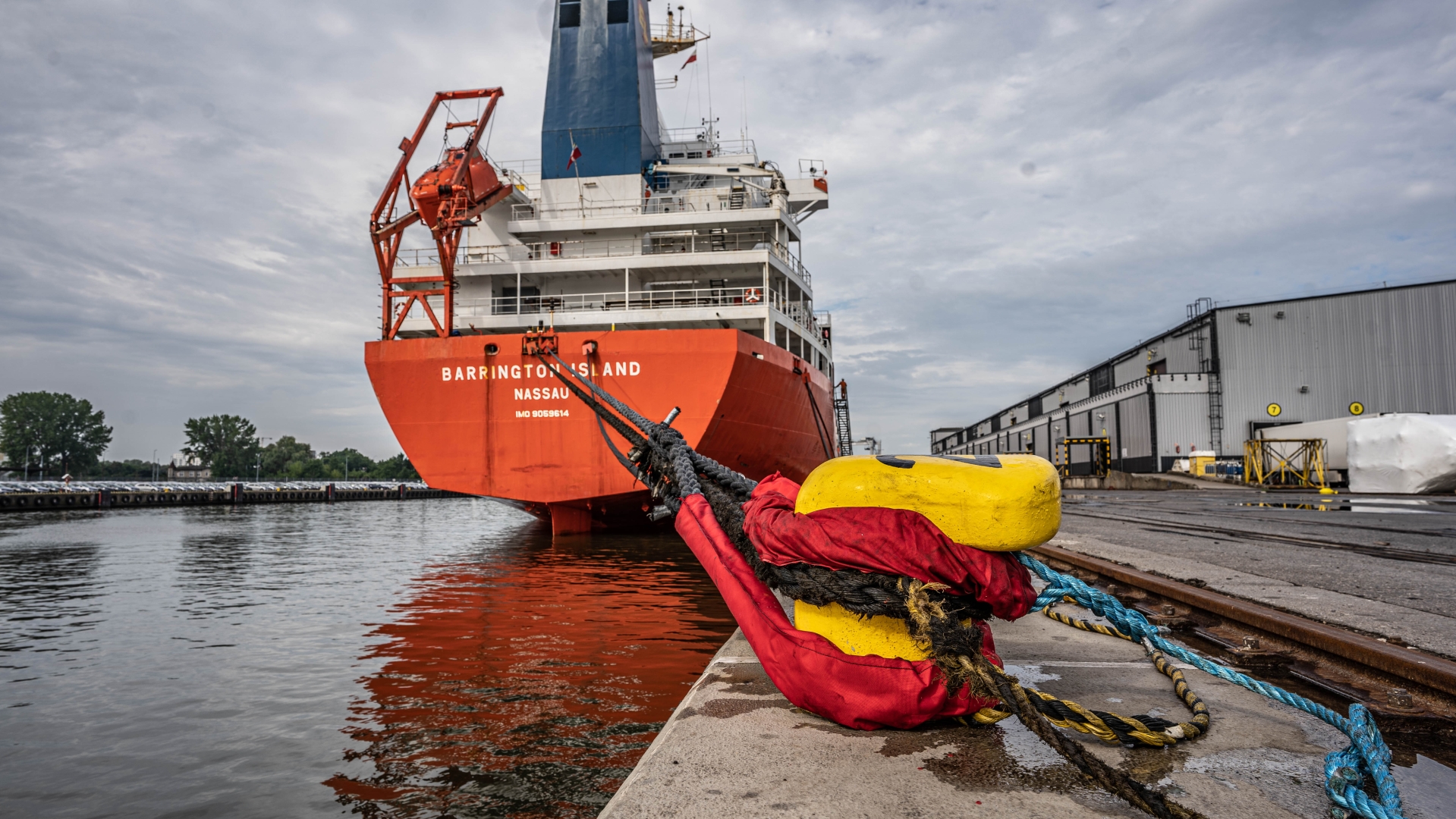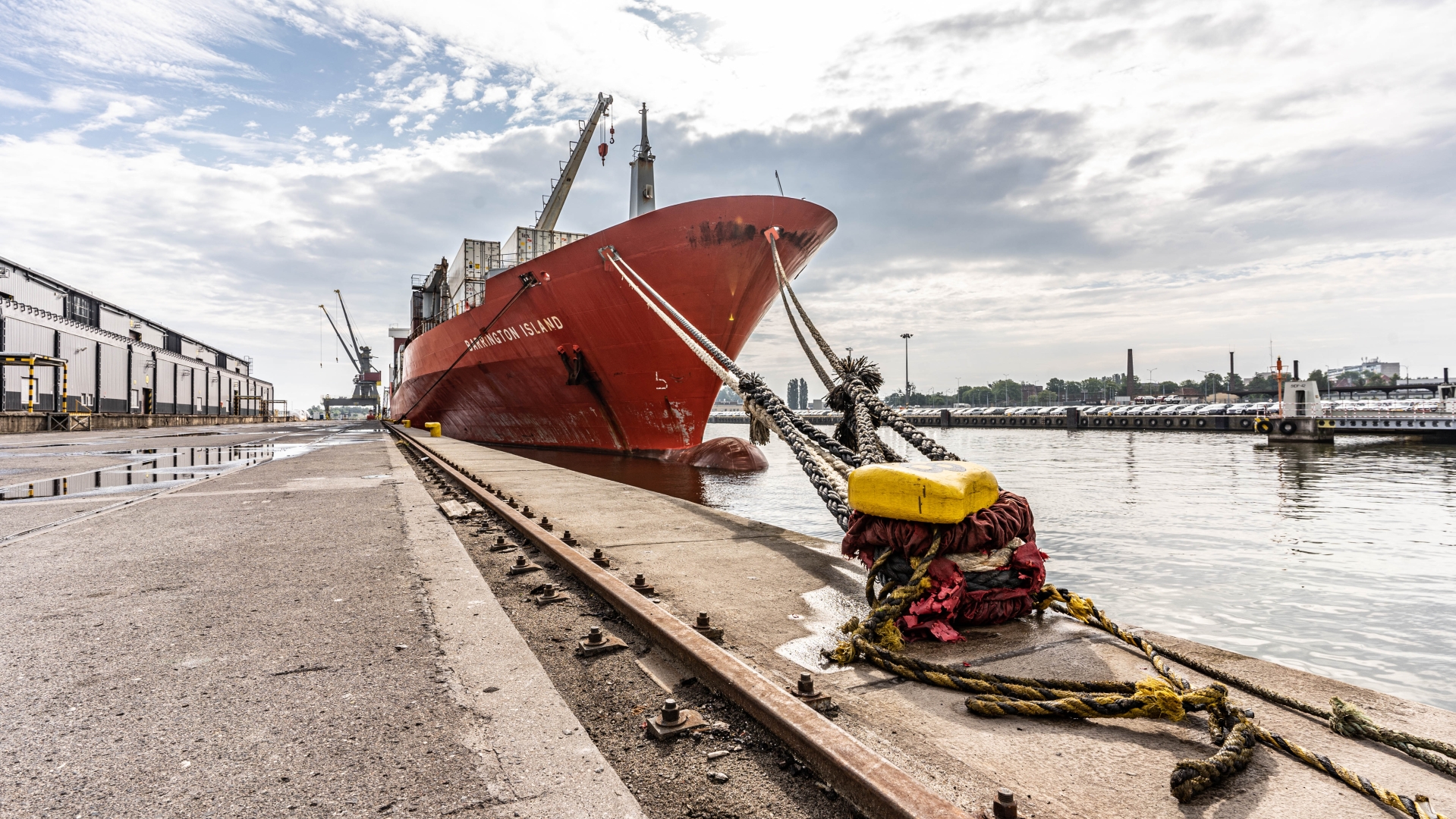 Barrington Island, który w zeszłym tygodniu cumował w gdańskim porcie ma 180 m długości i 25 m szerokości. Został zbudowany w 1993 roku i pływa pod banderą Bahamów.