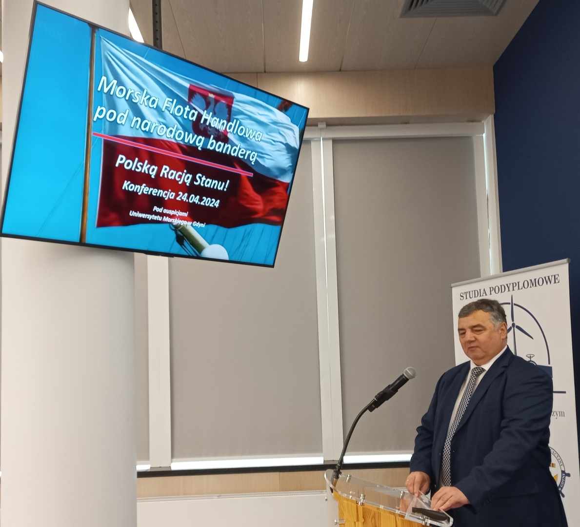 Co roku Polska traci około 8 mld zł z powodu tego, że polska flota handlowa pływa pod obcymi banderami – to najkrótsza konkluzja konferencji „Morska flota handlowa pod narodową banderą. Polską racją stanu!”, która odbyła się Wydziale Nawigacyjnym Uniwersytetu Morskiego w Gdyni 24 kwietnia 2024 roku.