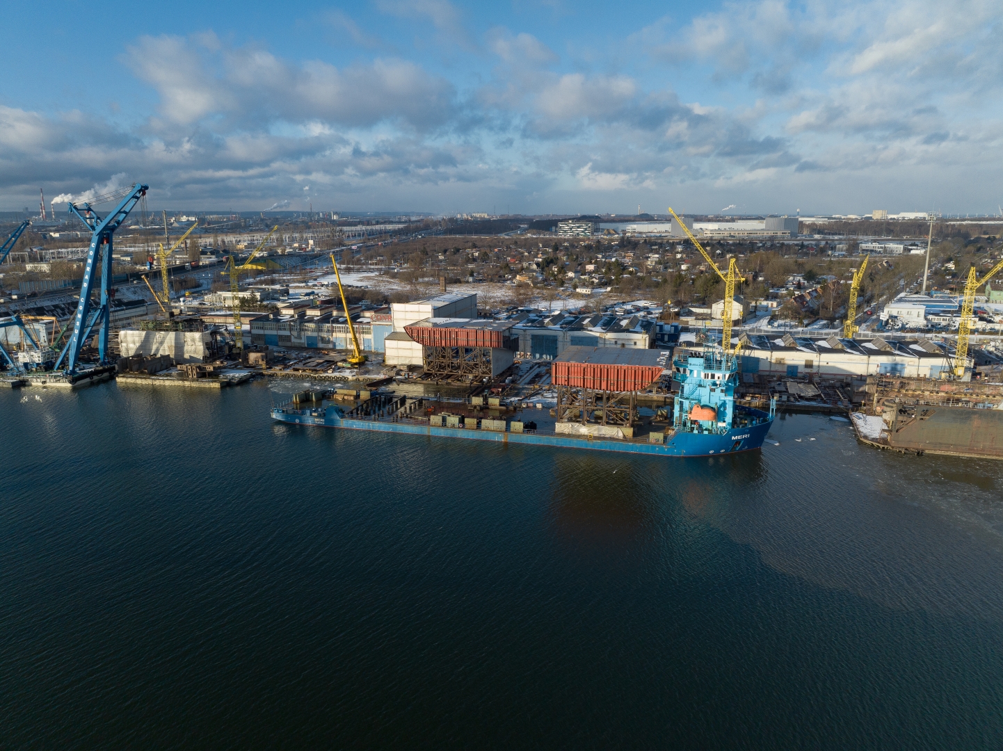 Aktualnie statek stoi w Kanale Kaszubskim i czeka na lepszą pogodę, aby wypłynąć do Finlandii.
