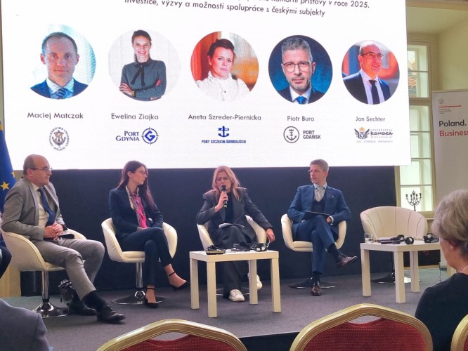 Inwestycje, wyzwania i możliwości współpracy z podmiotami z Republiki Czeskiej”. Piotr Bura z portu Gdańsk podkreślił kluczową rolę jego infrastruktury w obsłudze ładunków z Europy Środkowej oraz potencjał dalszej współpracy z partnerami z Czech. Z kolei Ewelina Ziajka, starsza specjalistka Biura Strategii i Analiz Rynkowych Portu Gdynia, zaprezentowała jego ofertę i kierunki rozwoju. Zarząd Morskich Portów Szczecin i Świnoujście reprezentowała Aneta Szreder-Piernicka.