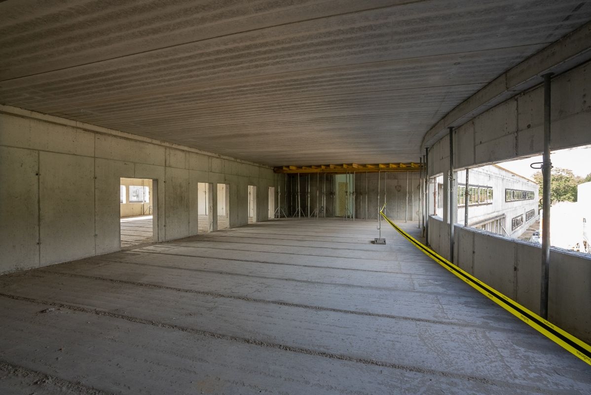 Obecnie instalowane jest również stolarka okienna i witryny aluminiowe, trwają prace montażowe instalacji sanitarnych.