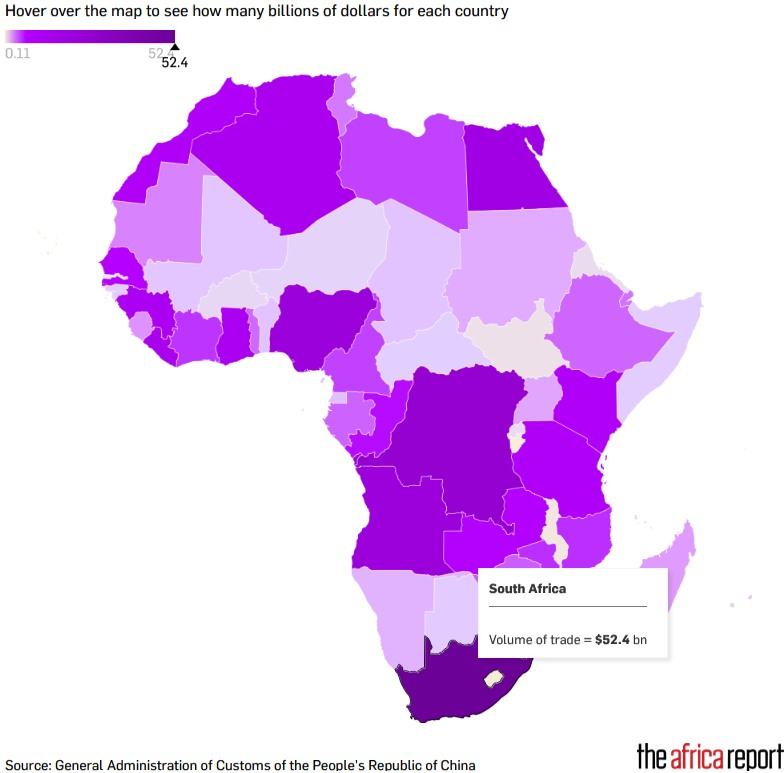 Chiny umocniły swoją pozycję największego partnera handlowego Afryki w 2023 roku. Wtedy handel z krajami afrykańskimi osiągnął rekordowe 282,1 mld USD. Osiągnięto wówczas wzrost obrotów o 1,5% w porównaniu z rokiem 2022. Jednak podobnie jak z UE, USA, czy polską współpraca ekonomiczna gospodarek Chin i krajów afrykańskich cechuje istotna nierównowaga.