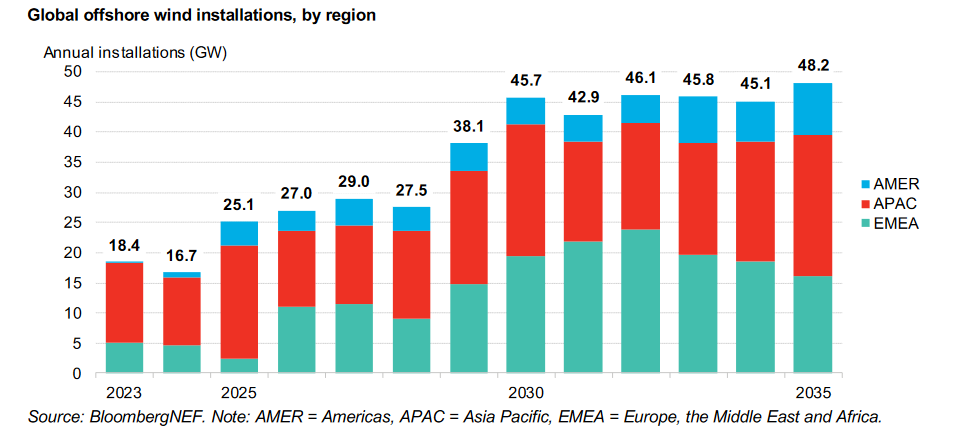 Chiny umocniły swoją pozycję jako lidera offshore z 25,6 GW mocy zainstalowanej - więcej niż Wielka Brytania (13,6 GW), Niemcy (8 GW) i Holandia (3 GW) łącznie.
