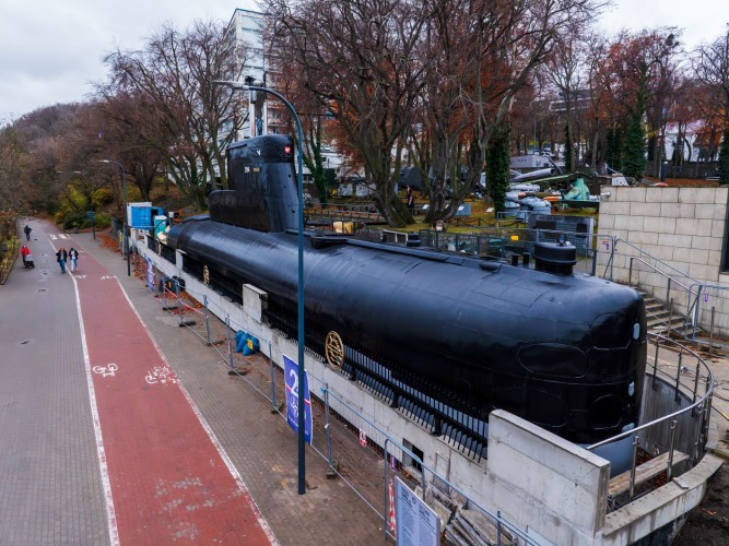 Znajdujący się przed wejściem na plażę okręt podwodny stał się już charakterystycznym obiektem w Gdyni, na który z zaciekawieniem spoglądają tak mieszkańcy, jak i turyści. Wciąż trwają prace związane z zagospodarowaniem i przygotowaniem wnętrza do zwiedzania, a także otoczenia wokół jednostki, co wiązało się z przygotowaniem suchej niecki, w której się obecnie znajduje.