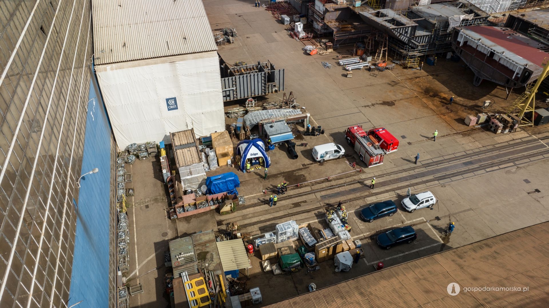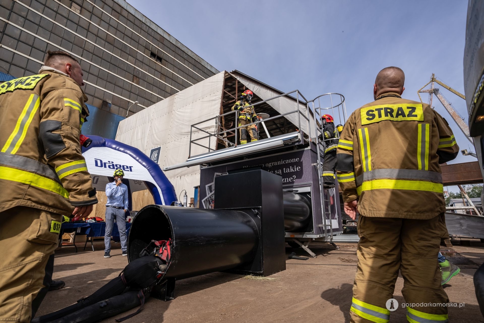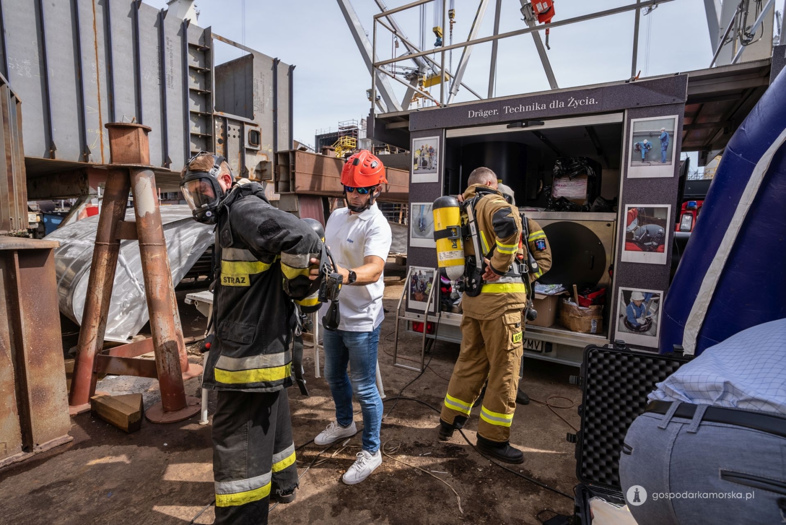– W pełnym umundurowaniu i z pełnym wyposażeniem strażak waży około 25-30 kg więcej – mówi Jakub Marer, prezes OSP CRIST. – Takie ćwiczenia wpisują się bardzo w zakres działań ratowniczo-gaśniczych na terenie stoczni, ponieważ projekty, które realizujemy, mają tych przestrzeni zamkniętych ogrom – dodaje Marer