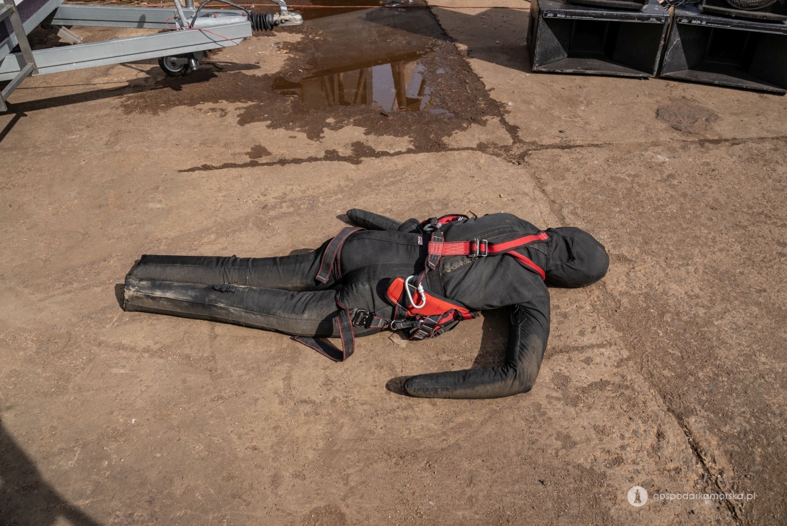 Wspomniany trenażer to specjalny kontener, w którym znajduje się ciasny labirynt. Są w nim symulowane trudne warunki, w jakich może przyjść ratownikowi prowadzić akcję: jest ciemno, jest zadymienie. W środku znajduje się zaś poszkodowany, w tym przypadku ważący około 70 kilogramów fantom. Zadanie jest proste, ratownik w pełnym rynsztunku musi wejść do trenażera od góry, dopełnić wszelkich procedur bezpieczeństwa, odnaleźć i ewakuować za pomocą sprzętu wysokościowego poszkodowanego, a następnie samemu pokonać labirynt i opuścić trenażer inną drogą.