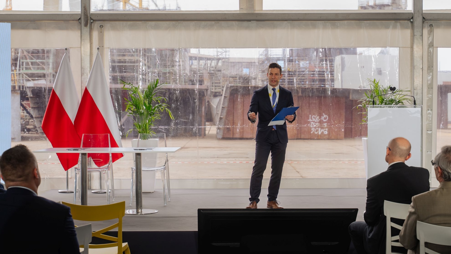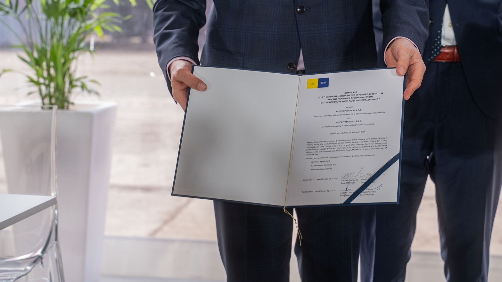 Do oficjalnego podpisania umowy na projekt, budowę i uruchomienie morskiej stacji elektroenergetycznej na potrzeby farmy wiatrowej BC-Wind rozwijanej przez Ocean Winds doszło podczas ceremonii na terenie stoczni CRIST ostatniego dnia marca. Uroczystość zgromadziła spore grono osób zaangażowanych w rozwój polskiej morskiej energetyki wiatrowej, jak również władz lokalnych i centralnych. Nie ma w tym nic dziwnego – wszyscy podkreślali, że umowa oznacza ważny krok dla całej branży. Nie stanowi tylko kolejnego kontraktu niezbędnego do uruchomienia BC-Wind, ale otwiera dla polskiego rynku stoczniowego zupełnie nowe drzwi, pokazując, że polskie firmy mogą pełnić rolę dostawców Tier 1, podpisujących kontrakty bezpośrednio z deweloperami, a nie tylko uczestniczyć w łańcuchu dostaw.