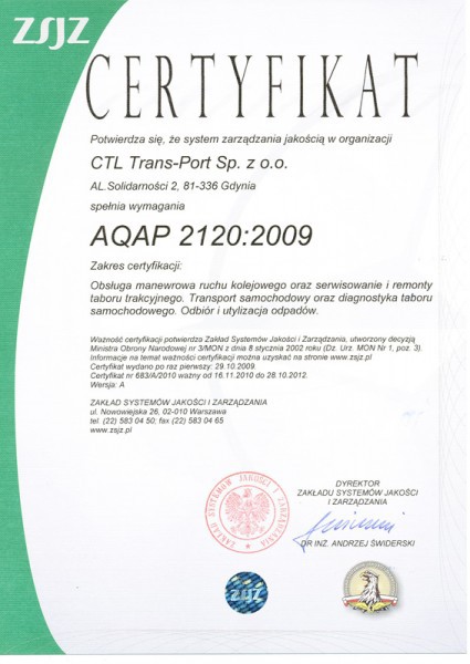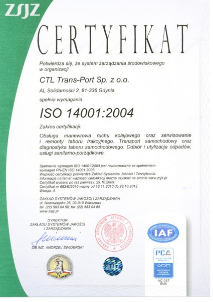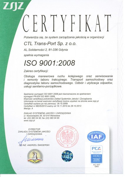 Posiadane certyfikaty jakościowe świadczą o najwyższym poziomie realizowanych przez Spółkę usług.