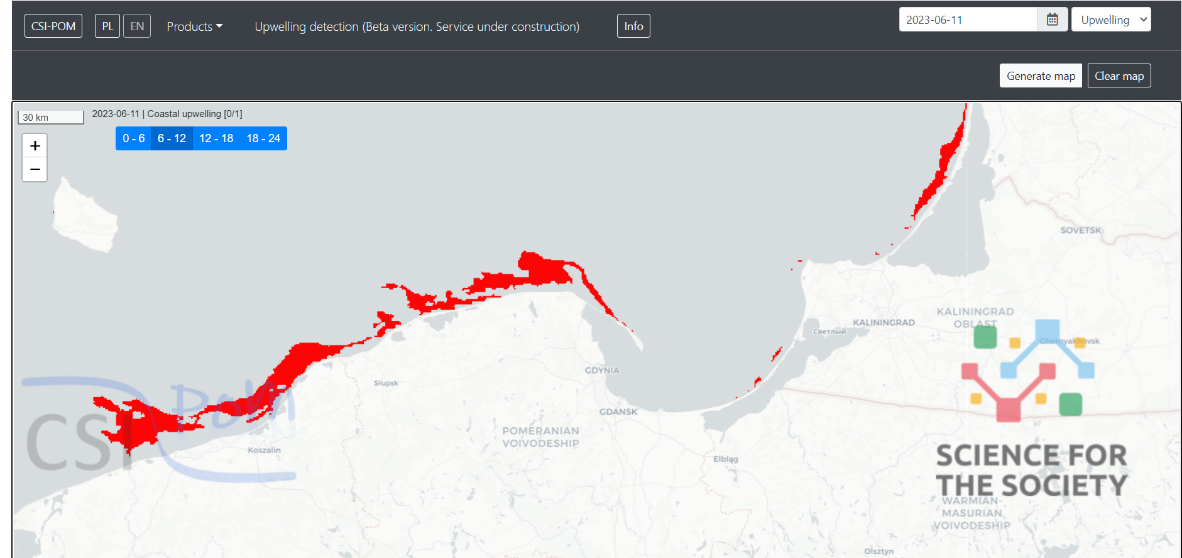 Rysunek 9. Widok okna strony CSI-POM po wybraniu produktu „Detekcja upwellingu” i daty.