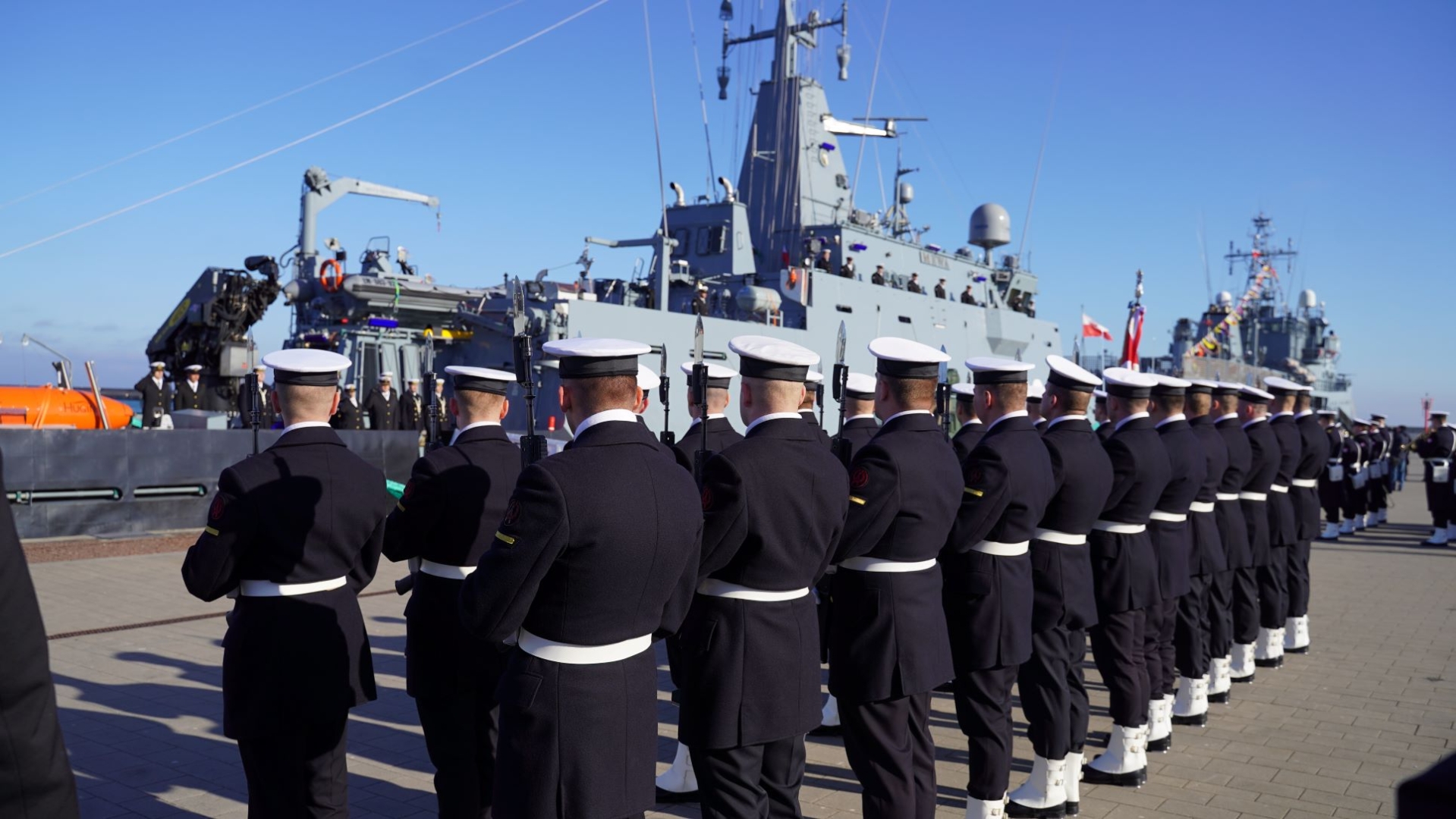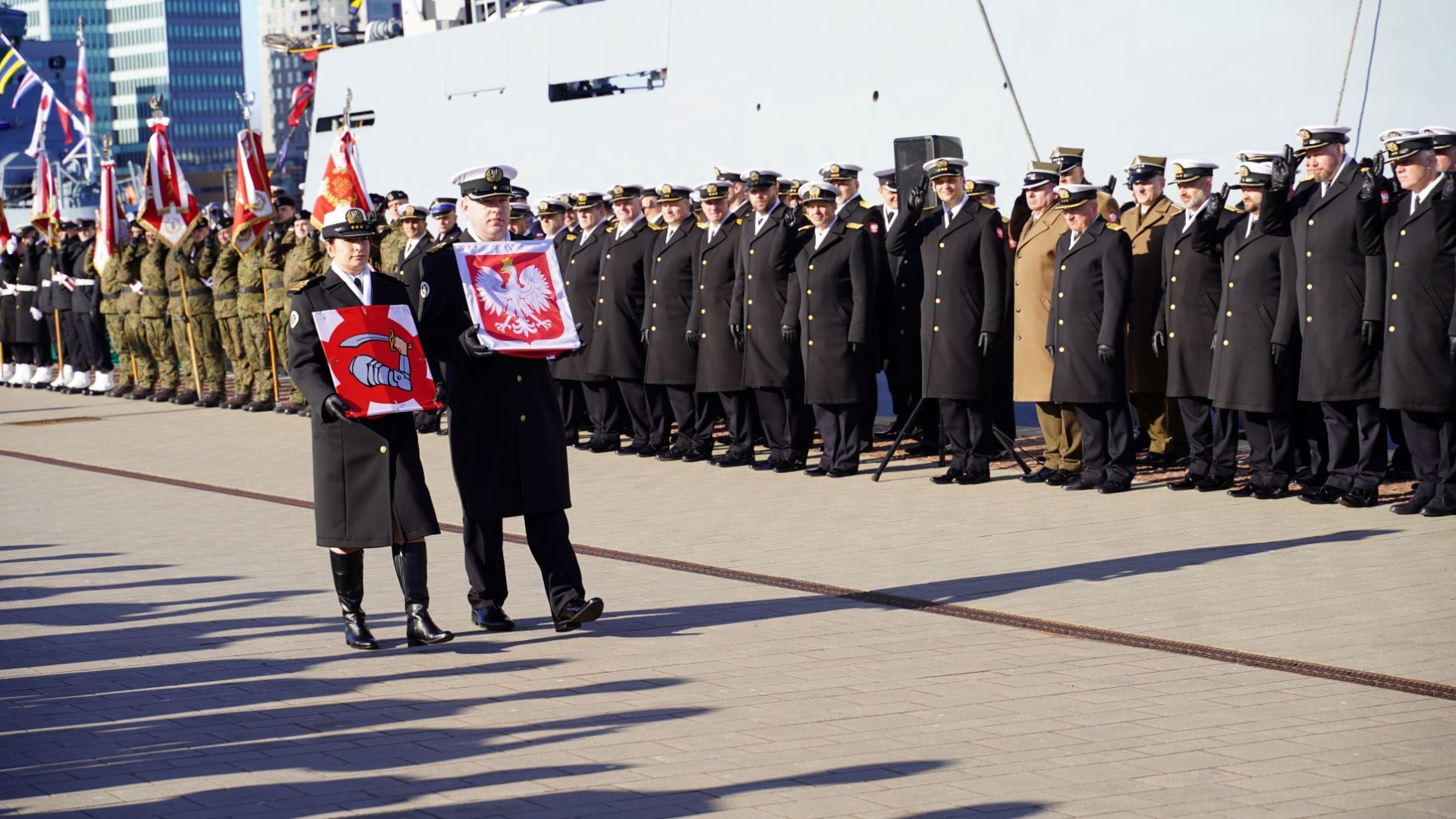 W ceremonii wzięli udział sekretarz stanu – szef BBN Jacek Siewiera, sekretarz stanu w Ministerstwie Funduszy i Polityki Regionalnej Marcin Horała, dowódca generalny RSZ gen. broni Wiesław Kukuła, inspektor MW wiceadm. Jarosław Ziemiański, dowódca 3. FO kmdr Andrzej Ogrodnik, dowódca 8. FOW kmdr Piotr Sikora, rektor-komendant AMW kadm. prof. dr hab. Tomasz Szubrycht, członkowie wyższej kadry dowódczej oraz dowódcy poszczególnych jednostek i instytucji morskiego rodzaju sił zbrojnych, a także przedstawiciele pozostałych formacji wojskowych i innych służb mundurowych, w tym Policji, Straży Pożarnej i Straży Granicznej. Wśród uczestników wydarzenia byli także m. in. przewodniczący sejmowej i senackiej Komisji Obrony Narodowej Michał Jach i Marcin Bosacki, przedstawiciele władz lokalnych, w tym wojewoda pomorski Dariusz Drelich i warmińsko-mazurski Artur Cholewa, a także matka chrzestna okrętu Anna Kułagin i prezes zarządu stoczni Remontowa Shipbuilding S.A. Marcin Ryngwelski. Oprawę uroczystości zapewniły Kompania Reprezentacyjna MW oraz Orkiestra Reprezentacyjna MW.