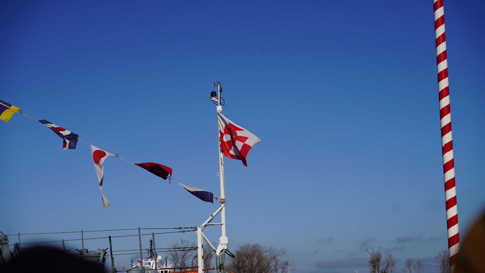 Moment samego podniesienia bandery był bardzo symboliczny. Zostały wtedy nadane pierwszy raz komunikaty związane z zasadami życia na okręcie, jakie odtąd będą praktykowane przez załogę codziennie rano, przed 8.00. Najpierw padła komenda "Minuta przed", co oznaczało, że za chwilę nastąpi ten historyczny moment. Gdy z okrętu został nadany komunikat „Czas upłynął” dowódca okrętu podniósł banderę i odtąd Mewa stała się ORP Mewą, czyli Okrętem Rzeczpospolitej Polskiej, który zasilił 13. Dywizjon Trałowców 8. FOW stacjonujący w Gdyni. Wtedy też została na nim podniesiona wielka gala banderowa, czemu towarzyszył hymn państwowy grany przez Orkiestrę Reprezentacyjną MW.