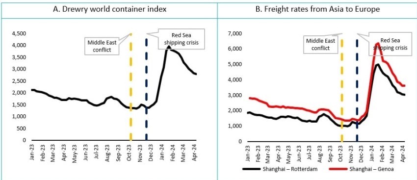 Trwający od miesięcy na Morzu Czerwonym kryzys doprowadził do gwałtownego wzrostu stawek frachtowych i kosztów ubezpieczenia żeglugi, przyczyniając się do inflacji i negatywnie wpływając na regionalną i międzynarodową gospodarkę żeglugową.