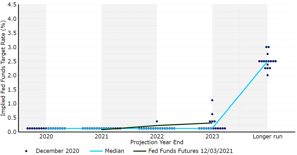 Wykres 3: „Dot plot” FOMC (grudzień 2020)