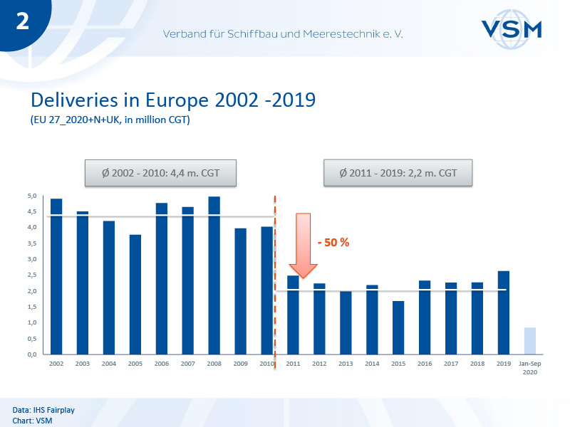 - Niech najlepiej przemówią liczby i wykresy, pokazujące pewien trend i wydarzenia, który doprowadziły nas do punku, w którym dzisiaj jesteśmy. Zostały one przygotowane i zaprezentowane na spotkaniu w imieniu SEA Europe przez dr Reiharda Luekena, dyrektora niemieckiego stowarzyszenia producentów okrętowych VSM.