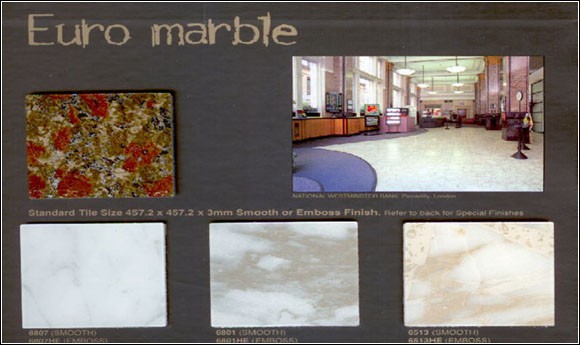 2.1.2Wykładziny o wyglądzie kamienia naturalnego / marmuru, - płytki o wymiarach 457,2 x 457,2 mm i 3 mm grubości. 33 kolory i faktura kamienia naturalnego.