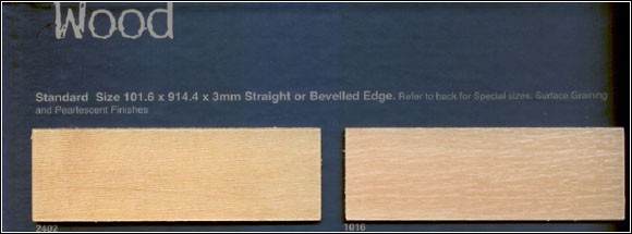 2.1.1Wykładziny o wyglądzie drewna, - płytki o wymiarach 101,6 x 914,4 mm i 3mm grubości. 24 kolory i odcienie drewna.