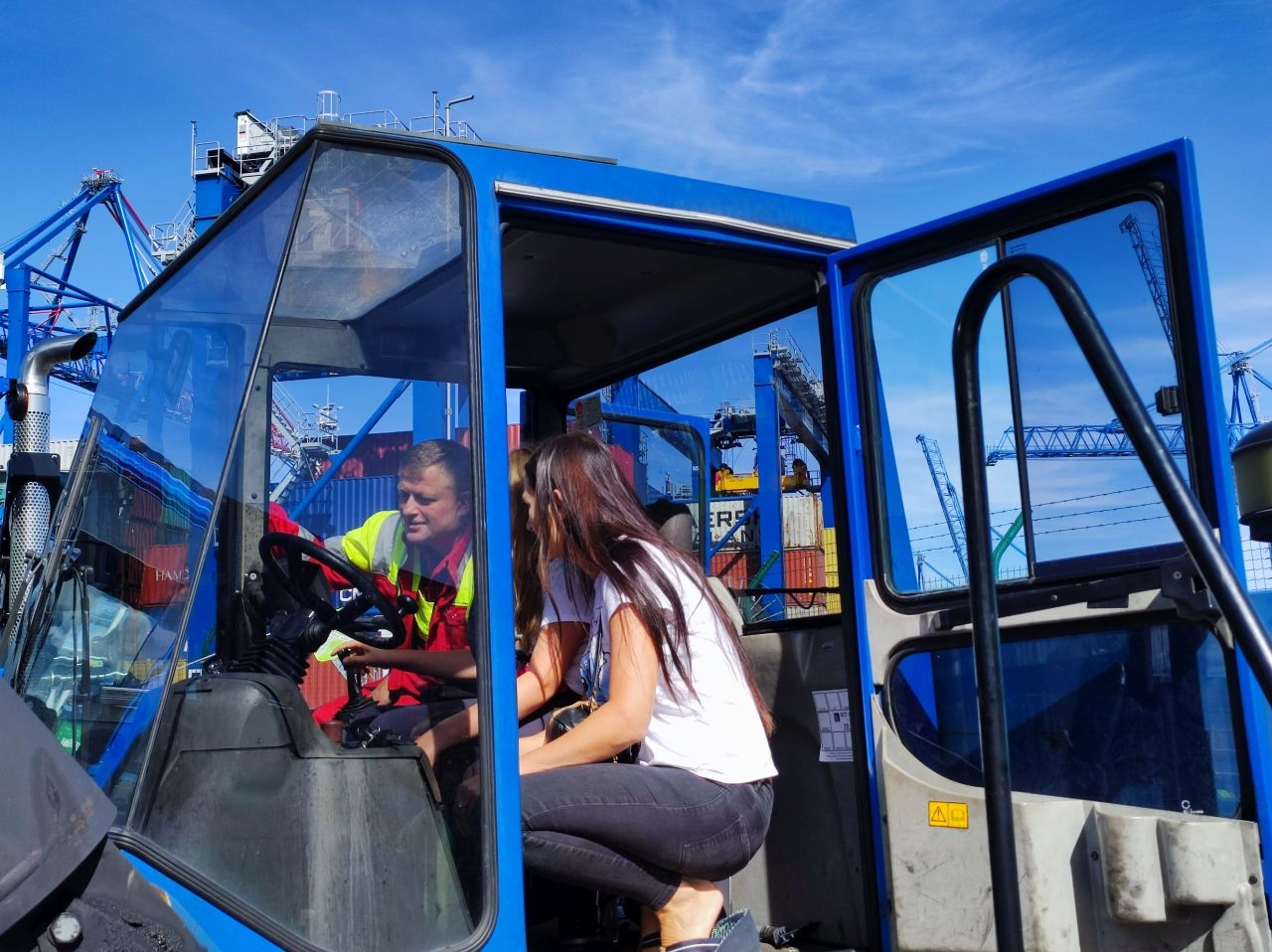– Symulator dachowania samochodu osobowego uświadomił mi, co się dzieje w trakcje wypadku. To nie było przyjemne, szczególnie wrzynające się w ciało, ciągnące pasy – mówi Szymon Truchan, którego tata pracuje w DCT na stanowisku brygadzisty. – Spektakularne było również podnoszenie kontenera.