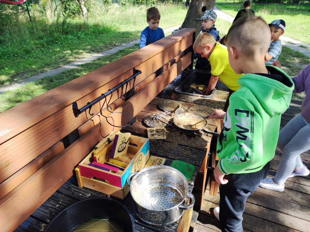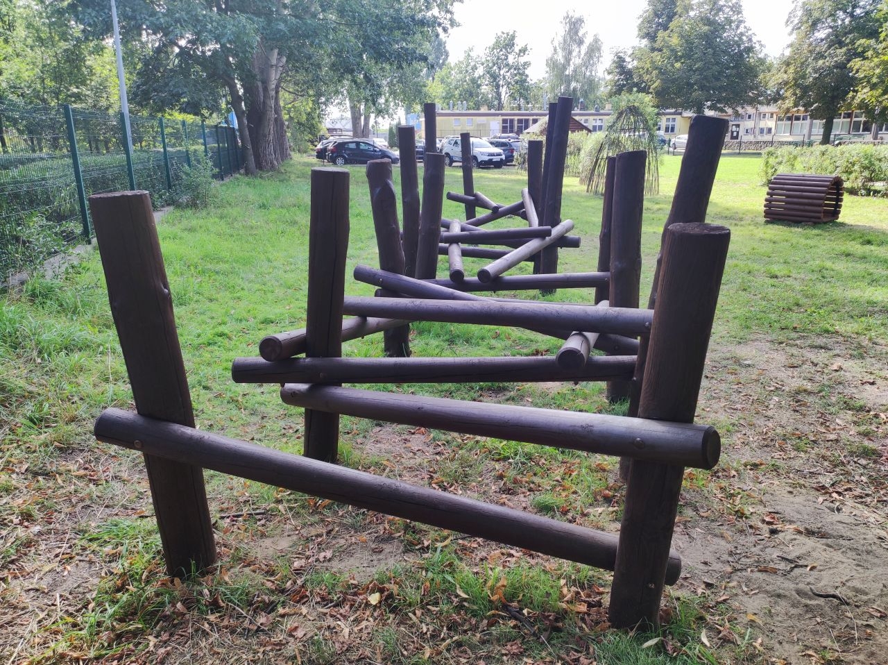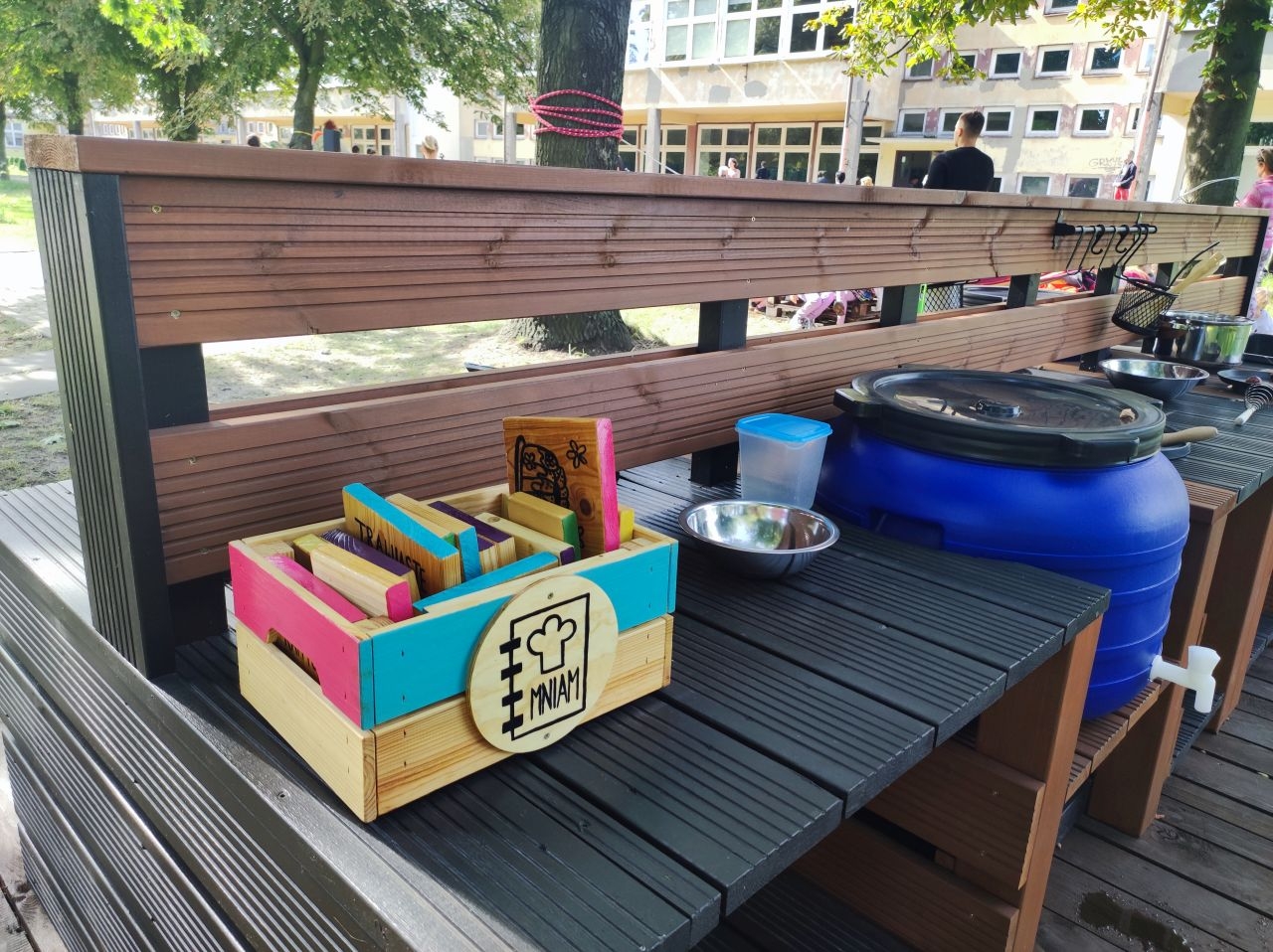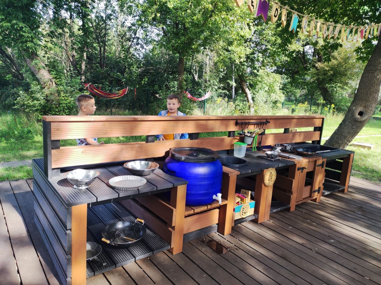 Finałem projektu jest uzupełnienie wyposażenia placu zabaw dla uczniów o drewniane elementy służące swobodnej zabawie. Szczególnie miejsce zajmuje kuchnia błotna.