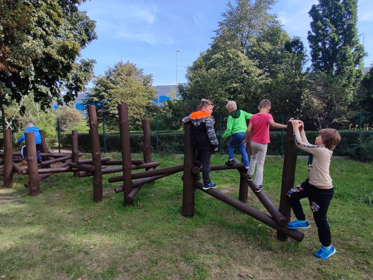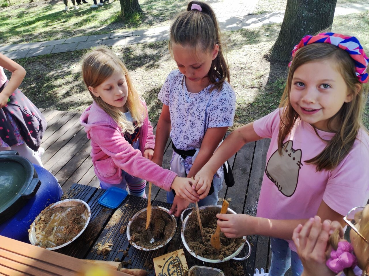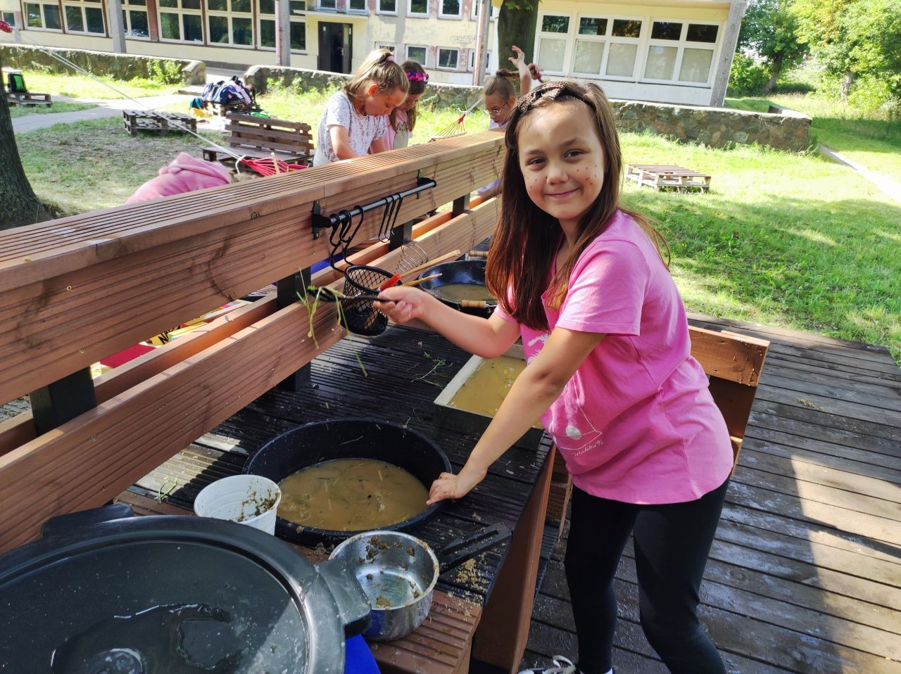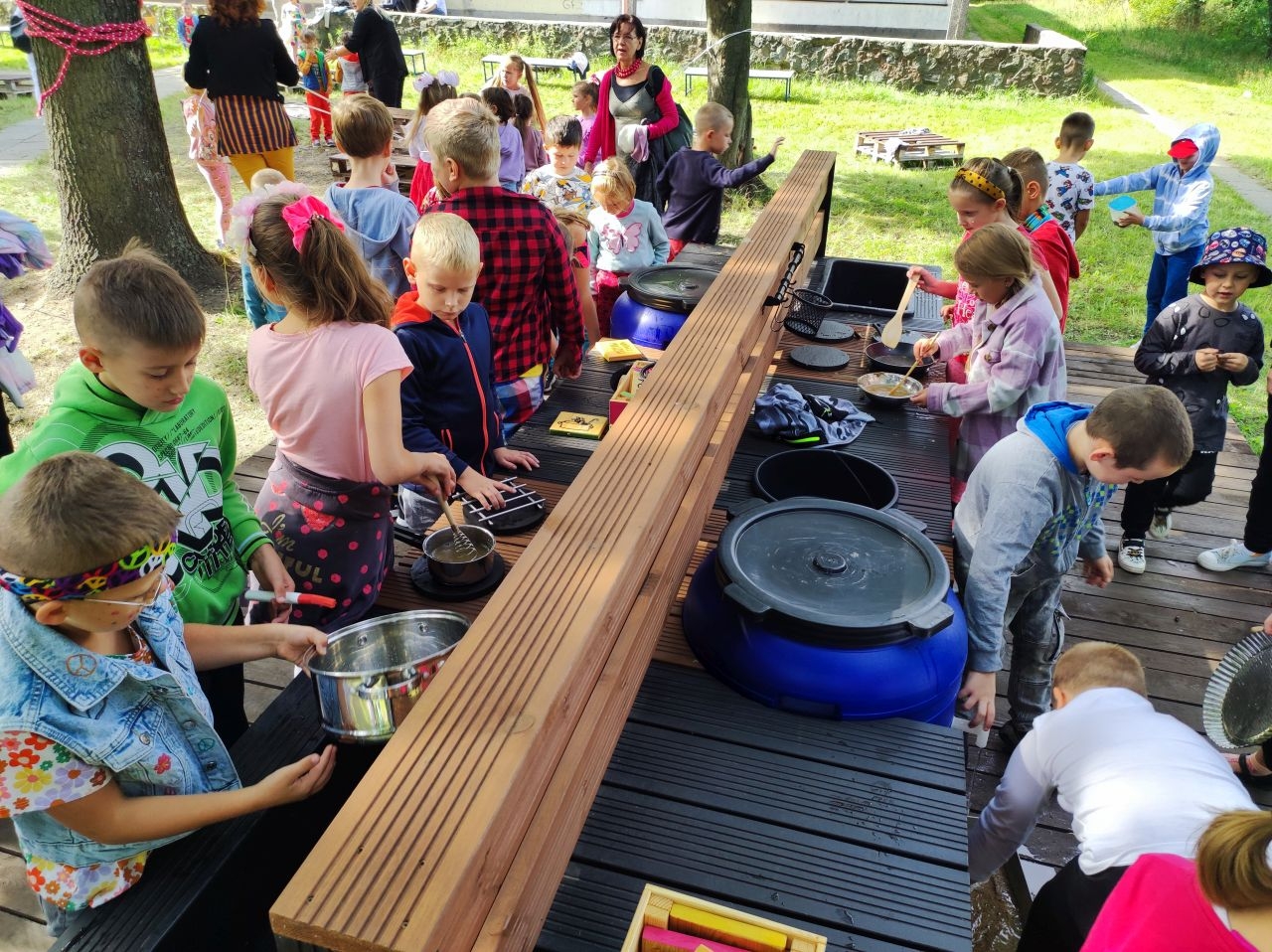 Finałem projektu jest uzupełnienie wyposażenia placu zabaw dla uczniów o drewniane elementy służące swobodnej zabawie. Szczególnie miejsce zajmuje kuchnia błotna.