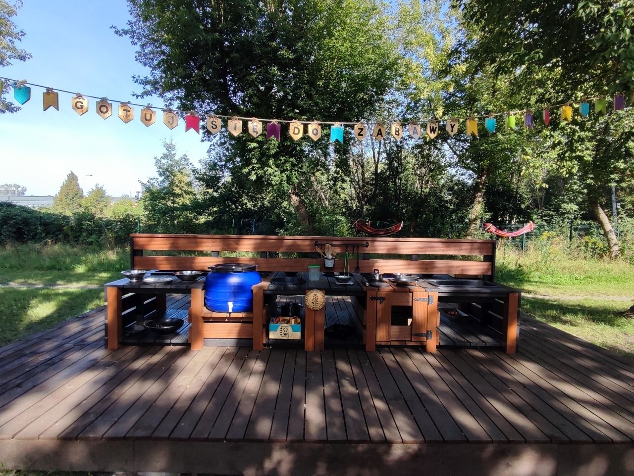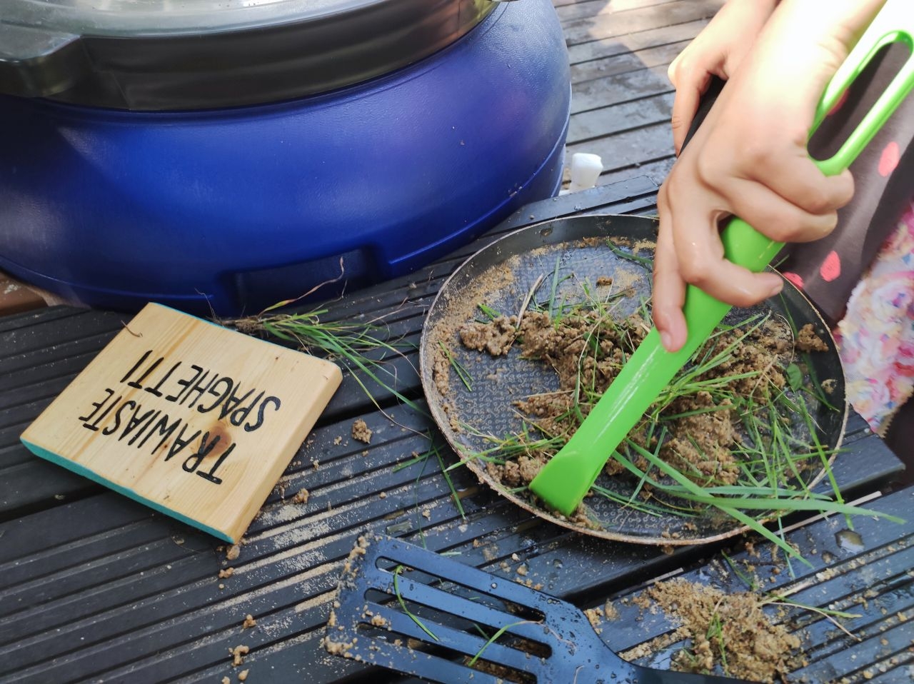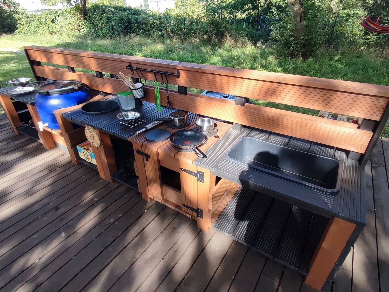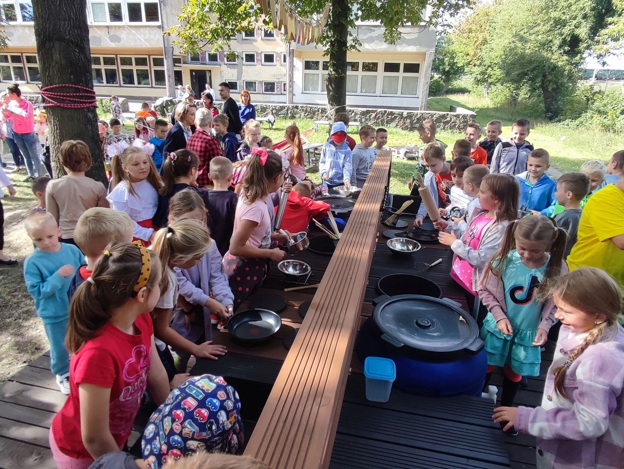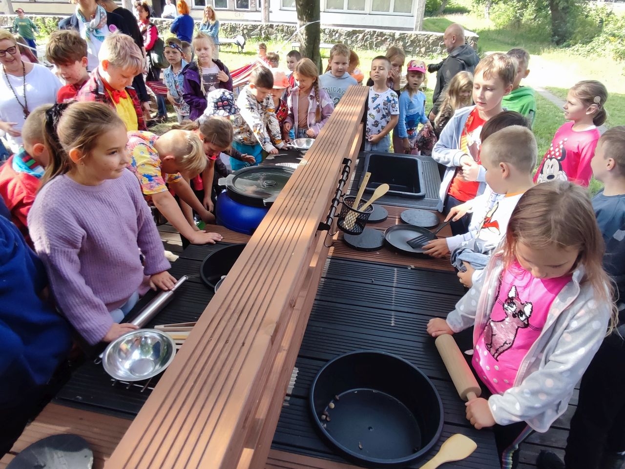 Finałem projektu jest uzupełnienie wyposażenia placu zabaw dla uczniów o drewniane elementy służące swobodnej zabawie. Szczególnie miejsce zajmuje kuchnia błotna.