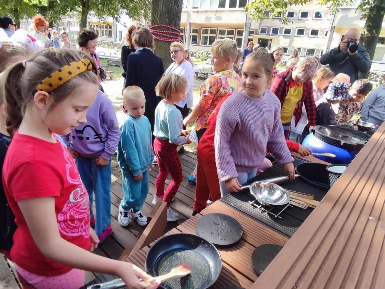 – Oddaliśmy dziś do użytku kolejne elementy, które wchodzą w skład naszego podwórka. To sprzęty wykonane z naturalnego drewna, które przysłużą się rozwijaniu motoryki u dzieci, a także kuchnia błotna, czyli prawdziwy raj dla dzieci, w którym mogą one swobodnie doświadczać i gotować: z liści, gałązek, kasztanów, szyszek, patyczków i oczywiście z... błota – mówi pani dyrektor.