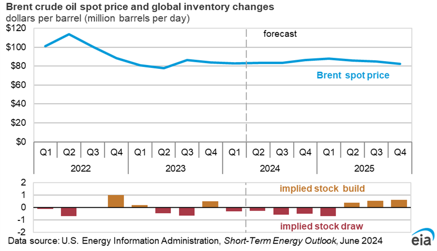 Druga połowa 2024 r. może być decydująca, jeśli chodzi o przychody branży. EIA zauważa, że „Cena spotowa ropy Brent w maju wyniosła średnio 82 USD za baryłkę (b), co oznacza spadek o 8 USD/b w porównaniu z kwietniem. Dzienne ceny spot również początkowo spadły po ogłoszeniu OPEC+ w dniu 2 czerwca, zamykając się na poziomie 78 USD/b w dniu 6 czerwca. Ale 24 czerwca osiągały 83,21 USD/b.