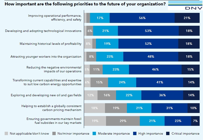 Eksperci DNV zadali również pytanie menedżerom firm działających w branży: Co spowodowałoby, że przedsiębiorstwa naftowe i gazowe zobowiązałyby się do osiągnięcia bardziej ambitnych celów klimatycznych? Odpowiedzi były zasadniczo jednoznaczne.