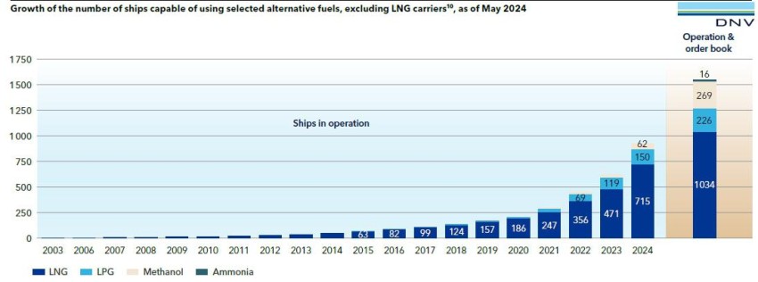 Zdaniem analityków DNV oznacza to, że armatorzy wybierają systemy dwupaliwowe dla większych statków. Dane wskazują, że transformacja floty handlowej na bardziej przyjazną dla środowiska odbywa się już na znaczną skalę, ale wciąż wolniej niż oczekiwano wyznaczając cele na 2030 rok i lata następne (2040 i 2050).