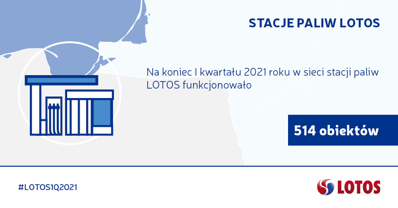 Na koniec I kw. 2021 r. pod marką LOTOS funkcjonowało 514 stacji paliw, tj. o 1 obiekt więcej niż na koniec 2020 r.