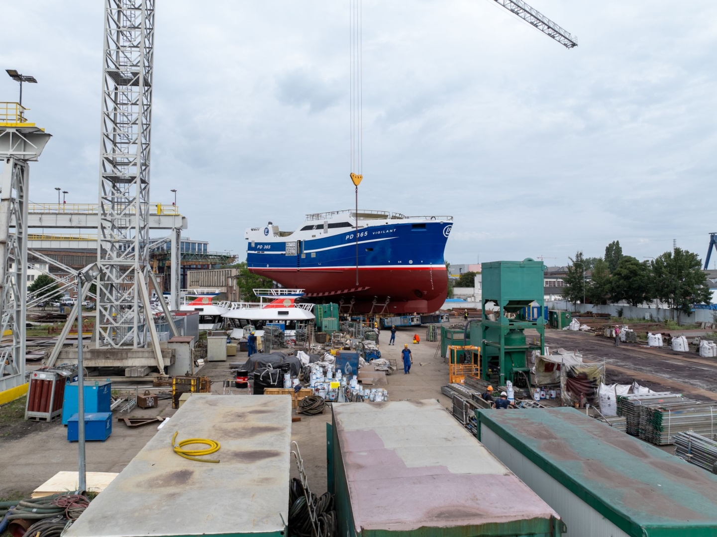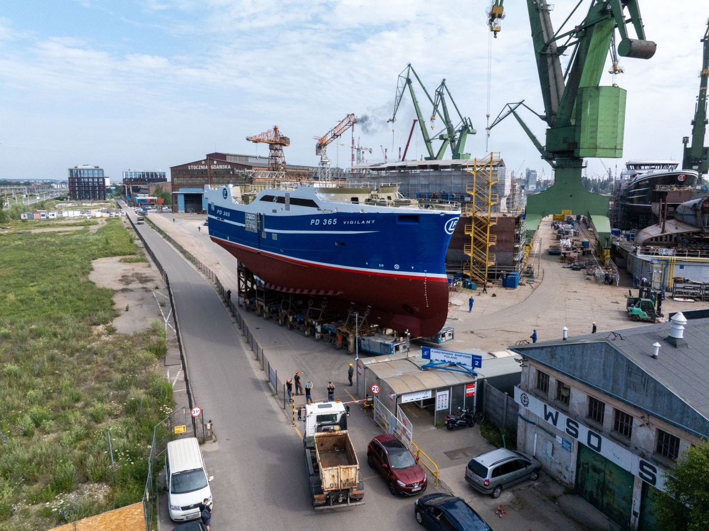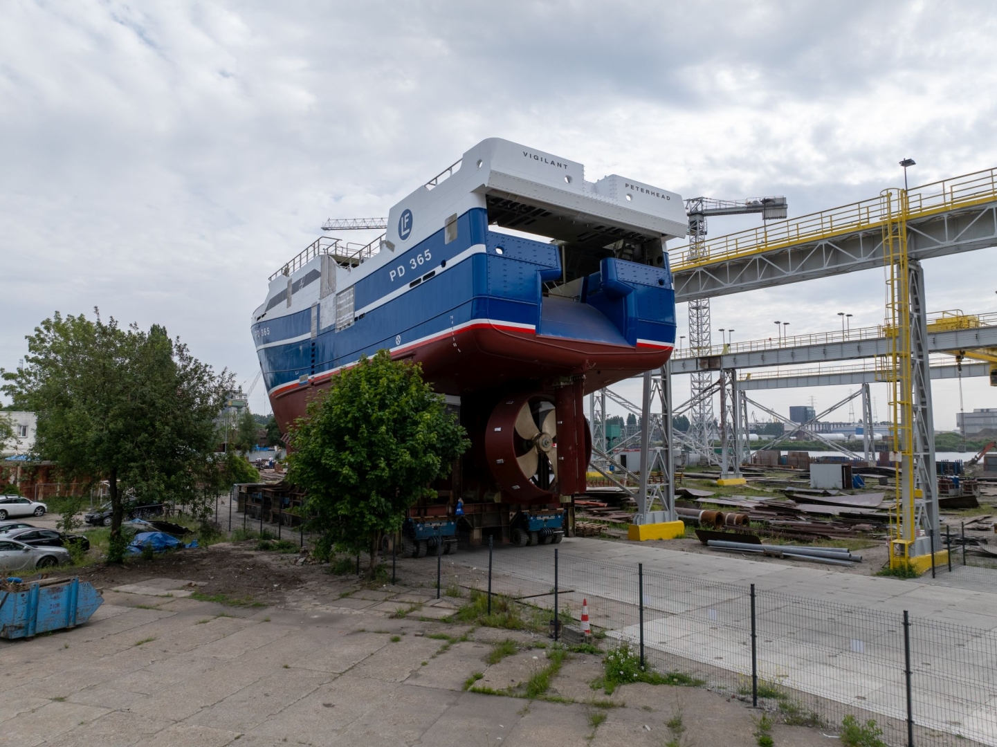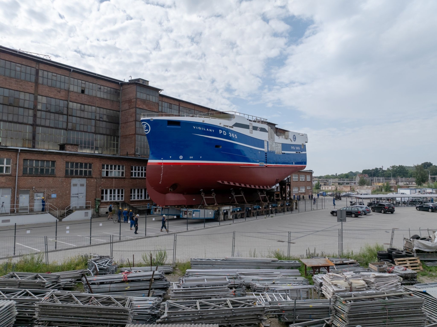 Vigilant, 36-metrowy statek rybacki, został zamówiony w Karstensen Skibsværft A/S przez szkocką firmę Lunar Fishing. Kadłub jednostki o tonażu 520 GT powstał w gdańskiej stoczni Karstensen Shipyard Poland. Konstrukcja jest już gotowy do wodowania, które odbędzie się w poniedziałek. Aby jednak wszystko przebiegło bez problemów, Vigilant musiał odbyć pierwszą podróż... na kołach dookoła stoczni.