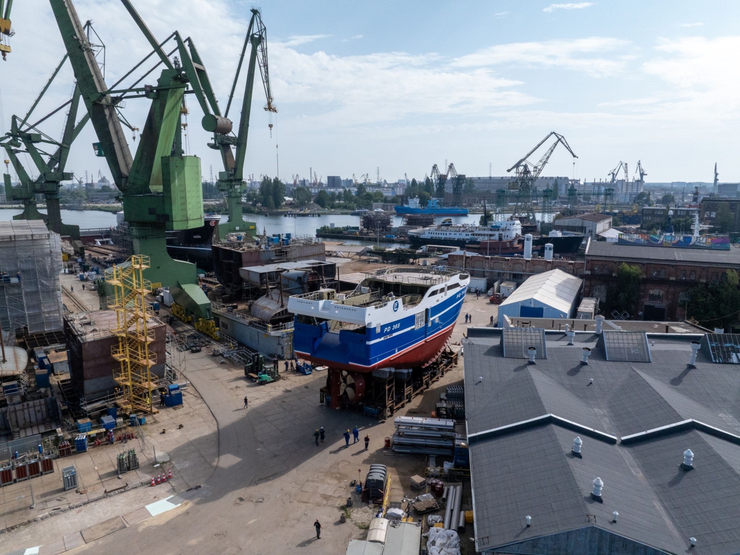 Statek stanął finalnie przy jednym z nabrzeży. Wodowanie, które odbędzie się za pomocą dźwigów pływających, zaplanowane jest na poniedziałkowy poranek.