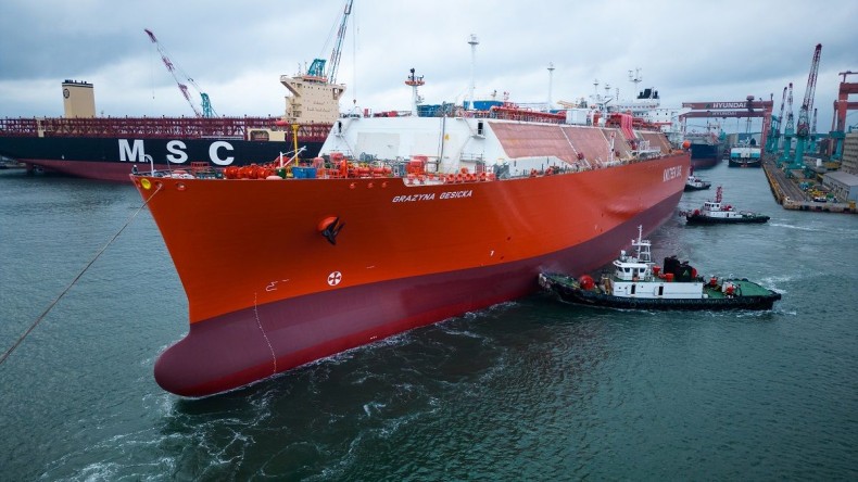 Gazowiec o imieniu „Grażyna Gęsicka” wyruszył, 17 czerwca, w swój pierwszy rejs do Polski z ładunkiem skroplonego gazu ziemnego (LNG). Jednostka dotrze do Terminalu im. Prezydenta Lecha Kaczyńskiego pod koniec czerwca tego roku.
