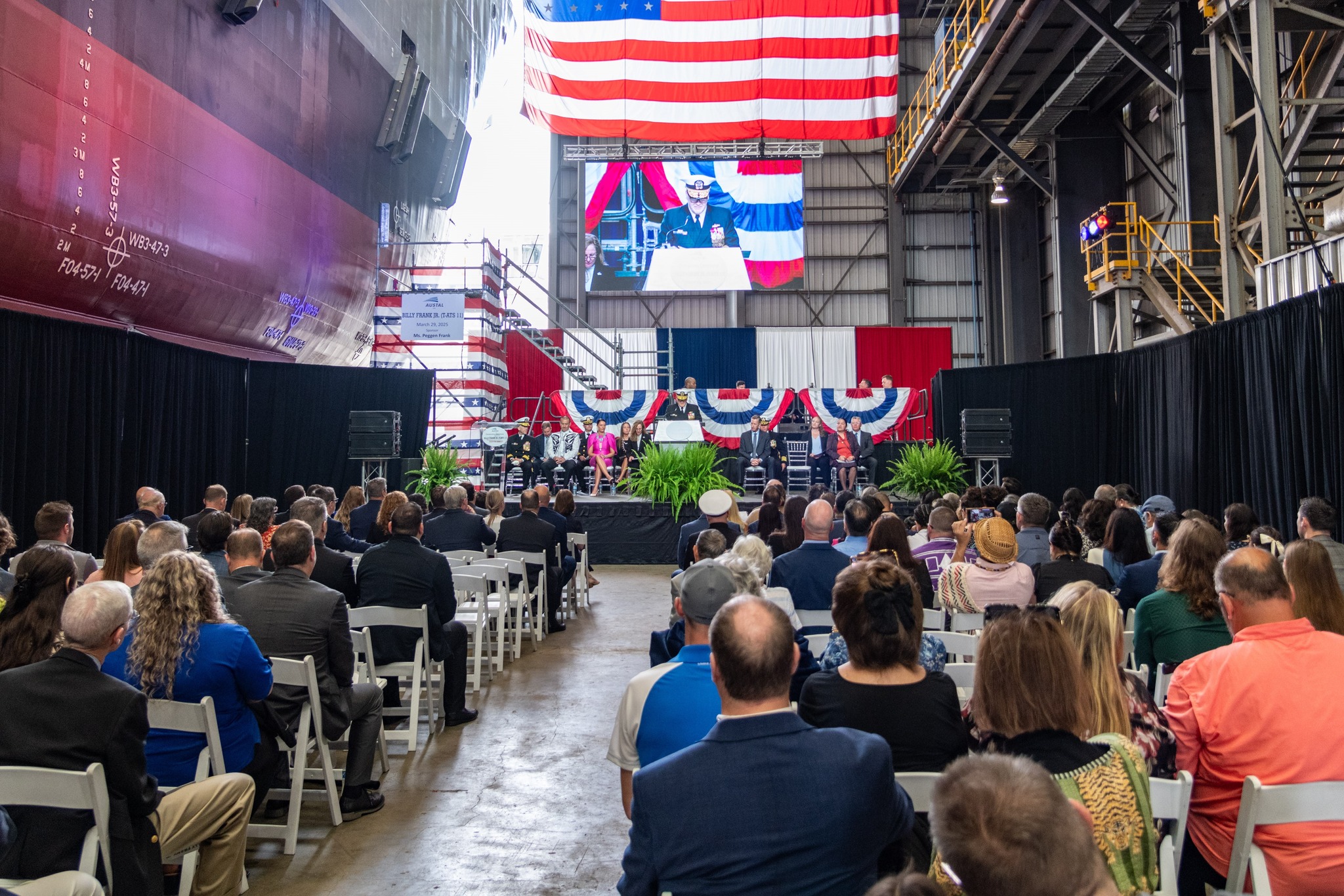 W zakładzie stoczniowym, gdzie miała miejsce uroczystość, byli m.in. obecni Brett Seidle, asystent Sekretarza Marynarki Wojennej ds. Badań, Rozwoju i Nabycia (p.o.), kadm. Thomas Anderson specjalista ds. realizacji programu budowy okrętów, kadm. Mark Haigis, zastępca dowódcy Wojskowego Dowództwa Transportu Morskiego oraz syn Billy’ego Franka Jr., William Frank III. Oprócz nich pojawili się przedstawiciele władz krajowych i lokalnych, a także stoczni i ich zaangażowanych w budowę tego okrętu. Tradycyjnie podczas tego rodzaju wydarzeń w USA matka chrzestna, Peggen Frank (żona Williama Franka III), rozbiła osobiście butelkę szampana o kadłub budowanej jednostki.