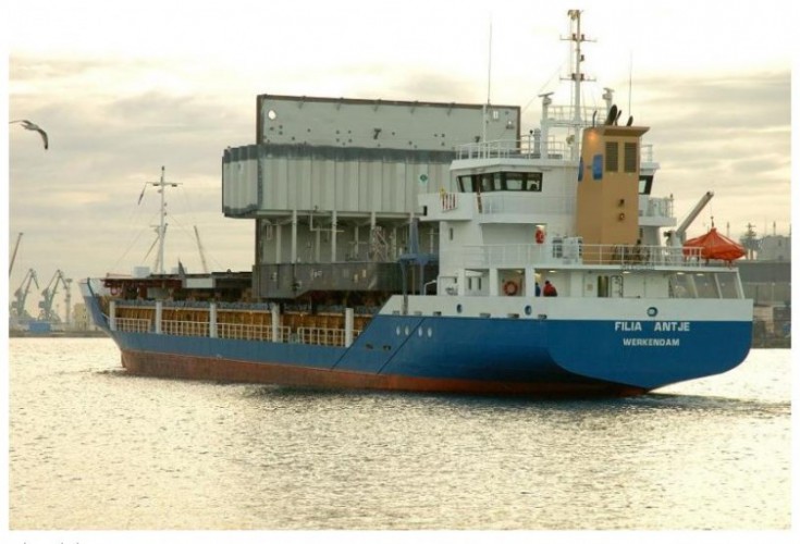 Załaduenk gigantycznego elementu platformy wydobywczej na statek Meri