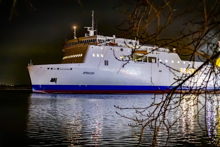 Epsilon to nowoczesny prom typu ro-pax zbudowany w 2011 r. w renomowanej włoskiej stoczni Visentini. Mierzy 186 m długości, 25 m szerokości, ma niemal 3000 m linii ładunkowej oraz dedykowany pokład dla samochodów osobowych. Może przewieźć jednorazowo ok. 130 ciężarówek i 260 pasażerów.